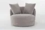 The Avaya Truffle Grey Fabric Swivel Barrel Chair brings modern comfort to your living room. This armless chair features a loose reversible back, ensuring both versatility and long-lasting use. The swivel design allows for easy movement, making this chair a practical addition to any space.