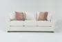 The Cameron IV 99" Fabric Sofa in Sanello Ivory brings a touch of traditional charm to your living room. Its medium comfort level ensures a cozy seating experience, perfect for relaxing with family and friends. The sofa's rolled arms and loose back design offer a classic and timeless look that complements various decor styles.