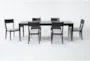 As part of a complete whole-home collection that was developed entirely by Living Spaces, the Austen dining collection reflects a unique and thoughtful approach to design. With a refined all-American look and extensive functionality, each piece is a natural and purposeful addition to your room. A textured black finish accentuates oak veneer and solid wood, while elegant turned and tapered posts give height and distinction. The dining table includes 2 felt-lined drawers that store place settings and silverware, plus one 18" extension leaf that expands the surface for more guests. It's paired with a coordinating upholstered chair.