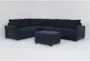 The Bonaterra Midnight Navy Blue Fabric 127" 2 Piece L-Shaped Sectional with Right Arm Facing Queen Memory Foam Sleeper Sofa Bed & Storage Ottoman is a versatile addition to any living room. This sectional offers spacious seating and includes a queen memory foam sleeper for overnight guests. The storage ottoman provides a convenient place to keep blankets and pillows handy.