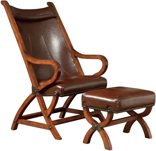 The Hunter Accent Chair and Ottoman Set is what living room goals are made of! This set is upholstered in a bi-cast leather, giving you the look of real leather, but not at the price of real leather. The traditional design also features brass nail head trim along the edges, instantly this stunning piece up a few notches.