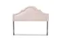 The Kaelen Full Light Pink Velvet Upholstered Headboard brings a touch of modern elegance to your bedroom. Its light pink fabric velvet upholstery and curved silhouette, highlighted by silver nailheads, create a sophisticated and contemporary look. Designed for both style and functionality, this headboard features pre-drilled holes for easy installation and height adjustment.