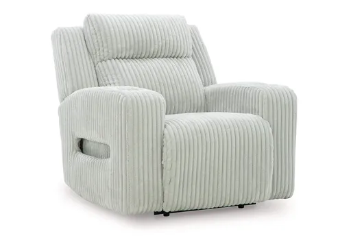 Trend-right style, meet irresistible modern function. Your living room gets a cozy-cool upgrade with this power recliner. Curl up in its ultra-chic corded upholstery and recline with one-touch controls. Is it movie night or game time? With ambient LED lighting, this recliner transforms from a serene relaxation spot to an entertainment hub. USB charging, cup holders and storage cutouts make lounging all the more convenient.