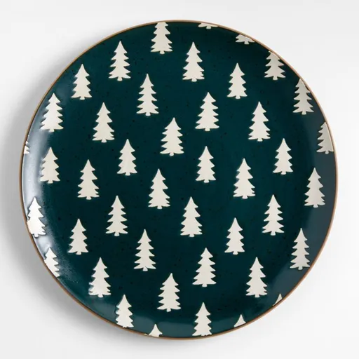 Inspired by the rustic woodlands of the Hudson Valley, a forest's worth of snow-laden evergreens scatters our Green Trees platter. Charming, graphic trees created using the wax-resist process offer subtle texture and graphic contrast in creamy white against the speckled pine-green glaze. Each stoneware serving plate is hand glazed by skilled artisans, with the unglazed rim providing a glimpse of the recycled clay for a warm, organic look. Pair the platter with the rest of the pieces in our exclusive Green Trees dinnerware and serving collection to set a festive table for everyday winter meals as well as the Christmas feast.