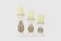 Give your space a radiant illumination with these beautifully crafted candle holders. Made with a sturdy base, it is perfect for creating an elegant atmosphere at your table top or mantel. Designed with a farmhouse style for that homey feeling. Designed with felt or rubber stoppers at the base that prevent scratching furniture and table tops, as well as sliding around. Can hold 3 pillar candles. This item ships in 1 carton. Wood candle holder makes a great gift for any occasion. Suitable for indoor use only. Made in India. This candle holder comes as a set of 3. Farmhouse style.