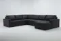 Araceli II Charcoal Grey Black Vegan Faux Leather 4 Piece Full Sleeper Sectional With Right Arm Facing Chaise