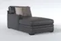 The Greer Dark Grey Leather Left Arm Facing Chaise offers a perfect blend of casual and contemporary style, making it a versatile addition to any living space. Crafted from 100% leather, this chaise provides a soft and luxurious seating experience. Its modular design and deep-seated comfort are complemented by the included accent pillows, ensuring both style and relaxation.