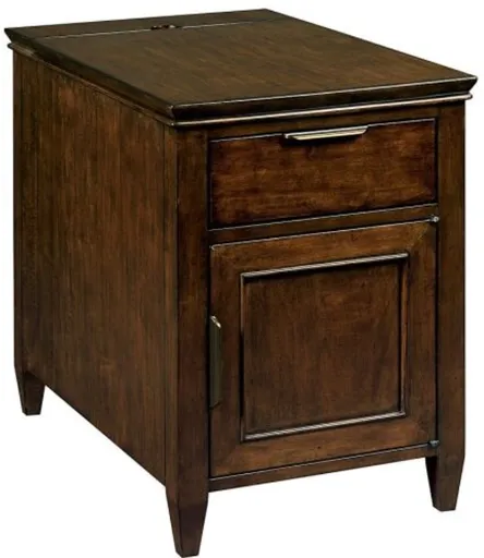 The Kincaid® Elise Amaretto Chairside Table combines practicality with refined design. Finished in rich amaretto, it offers organized storage for remotes, reading materials, and cords, keeping essentials within easy reach yet neatly concealed. Its compact size and elegant styling make it a functional and attractive addition to any seating area.