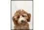 Add a charming touch to your home with the 32X42 Golden Doodle With Black Frame. This framed art piece features a lifelike depiction of a golden doodle that is sure to warm any room. Perfect for animal lovers, this photorealistic print brings a soft color palette and a sense of natural beauty to your wall decor.