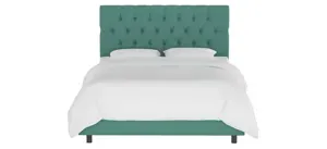 Craft an elegant centerpiece for any bedroom in your home with the Blanchard hand upholstered bed that features a tufted square headboard design. Made to order, this piece offers a stately, traditional feel and it is manufactured in Illinois. Both the headboard and bed rails are wrapped in a plush Textured Linen fabric, and easily attach to the metal bed frame that is provided. Expert diamond tufting adds a special appeal and stylish look that is truly timeless. Let this bed serve as the anchoring piece and inspiration for your bedroom design.