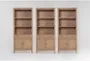 The Wright Natural Wood 75" Door Bookcase Set Of 3 is a perfect addition to any modern office or workspace. Crafted from elm and other veneers and select hardwoods, this set features a warm elm color that complements various decor styles. The set includes adjustable shelving, doors for added storage, and a drawer to keep your office essentials organized.