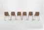Enhance your dining experience with the Cobbler II Mocha Faux Leather Bucket Seat Dining Side Chair Set of 6. These modern chairs feature a sleek design and baseball stitching that adds a touch of sophistication to your dining room decor. The combination of cognac faux leather and black metal legs creates a stylish and durable seating solution.
