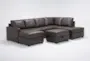Experience ultimate comfort and style with the Mathers Grey Brown Vegan Faux Leather 2 Piece Sectional. This modern sectional features a left arm facing sleeper sofa chaise and a right arm facing corner chaise, making it perfect for any living room setup. The included ottoman enhances your seating arrangement, providing additional versatility and relaxation options.