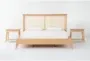 Introducing the Mariko King Natural Rattan & Wood Platform 3 Piece Bedroom Set with 2 1-Drawer Nightstands, designed by The Essentials. This modern bedroom suite combines the natural beauty of ash veneer, solid birch, and cane to create a harmonious sleeping environment. With its Eastern King size, this set provides ample space and a comfortable platform for restful nights.