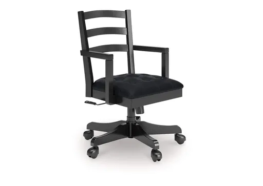 Raise the bar on modern farmhouse style with the Wildenauer home office chair. Its casual good looks are accentuated with a comfortably cushioned seat and warm satin black finish. And it swivels, rolls and adjusts so you can remain a mobile multitasker. Whether your style is vintage, country or eclectic, this richly crafted chair adds a hearty element.