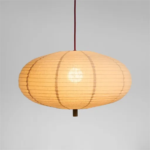 Inspired by classic Japanese lanterns, our Soren pendant light's oval linen shade gives off a cozy glow. Its oak finial is a cool contrast to the red powdercoated metal ceiling plate. Ideal for bedrooms, play corners or hangout zones, it's a simple statement piece that feels both calm and collected.