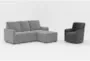 The Aramis Vintage Grey Fabric 83" Sofa with Reversible Chaise and the Katrina Velvet Grey Fabric Swivel Glider Arm Chair bring modern style and comfort to your living room. Each piece features plush fabric upholstery in a neutral grey hue, perfect for creating a cozy yet contemporary atmosphere. The sofa boasts a reversible chaise for versatile seating options, while the arm chair offers smooth swivel and gliding functionality.