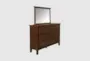 The Rowe Chestnut 6-Drawer Dresser With Mirror is a stunning addition to any modern or contemporary bedroom. Crafted from solid rubberwood and featuring a rich chestnut brown finish, this dresser combines durability with timeless elegance. The included mirror adds both functionality and style, making this piece a perfect blend of form and function.