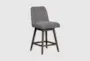The Balder Swivel Counter Height Stool in Gray Oak Wood Finish with Gray Boucle Fabric combines modern design with mid-century modern elements, making it a stylish addition to any kitchen or dining area. Crafted from durable rubberwood and upholstered in luxurious boucle fabric, this stool offers both comfort and elegance. The 180-degree swivel function ensures maximum mobility and ease of use.