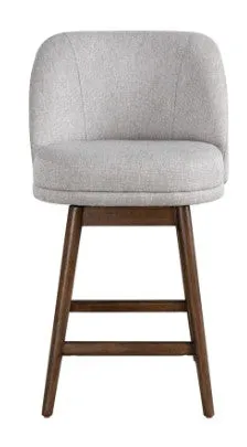 The Sadie Barstool brings a refined blend of style and comfort to your kitchen island, counter, or home bar. Featuring a low-back design with a rectangular upholstered seat and sleek curves, this modern transitional barstool offers an elegant seating solution. Upholstered in durable polyester fabric, the soft fiber-wrapped foam cushioning ensures superior comfort for everyday use or entertaining guests. Available in two practical heights – 26-inch counter height and 30-inch bar height – the Sadie Barstool is perfect for a variety of spaces. Its 360-degree swivel feature allows for smooth movement, making it ideal for gatherings or casual meals. The sturdy rubberwood frame, enhanced with a brushed finish, provides lasting durability while adding a sophisticated touch to the overall design. Choose from two versatile finishes: The Sadie Barstool includes a 1-year warranty covering fabric, foam, and frames for added peace of mind. Assembly is quick and simple, requiring only a screwdriver and approximately 30 minutes with two people.
