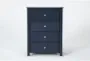 Introducing the Luca Blue Wood 4-Drawer Chest, a perfect blend of contemporary style and practical functionality. This stylish piece is crafted from solid pine and MDF, providing durability and a sleek blue finish that complements any bedroom decor. Its narrow design is ideal for small spaces, making it a versatile addition to kids' rooms or any bedroom.