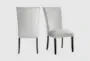 The Celina Upholstered Grey Velvet High Back Dining Side Chair Set of 2 brings a touch of modern glam to your dining space. These chairs feature a chic grey velvet fabric and a high back design, providing both comfort and style. The chrome nail head trim and black finish on the legs add a sophisticated touch to these elegant dining chairs.
