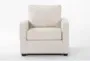 Enhance your living room with the Mathers Cream Beige Fabric 37" Armchair. This modern armchair, upholstered in 100% polyester fabric, offers both comfort and style. Its solid alder wood construction ensures durability, making it a perfect addition to your home.