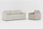 Experience the modern charm of the Mathers Cream Beige Fabric 91" Sofa and the Mathers Mocha Vegan Faux Leather Chair. This sophisticated set is designed to bring comfort and style to your living room. The cream fabric and mocha faux leather create a perfect balance of warmth and versatility.