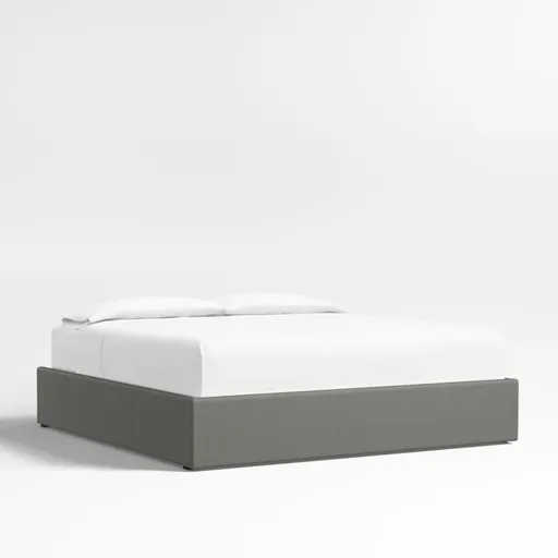 Our custom bed collection lets you mix and match our top-selling headboards and bases for a look that's truly yours. A great choice for smaller, storage-challenged bedrooms, this base includes three roomy drawers—one on each side and one at the foot of the bed—for storing off-season clothes and extra blankets. As a plus, the side drawers open with just enough clearance to avoid hitting nightstands and other bedroom furniture. Padded and neatly tailored, the storage bed is upholstered in a grey linen-blend fabric. Our exclusive storage bed base is designed to fit perfectly with any of our signature headboards.