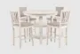 The Tamy Round Wood 42" Distressed White Counter Dining Table Set for 4 is a perfect blend of traditional and rustic styles, offering a timeless and classic look for your dining area. Crafted from rubberwood solids and veneers, this set features a beautiful distressed white finish that adds a touch of elegance to any space. The counter-height design and X-back chairs provide both comfort and style, making it an ideal choice for casual dining and entertaining.