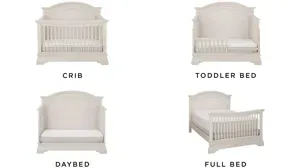 With timeless elegance in a youthful traditional style, the Bella collection transforms the nursery space into the perfect princess room. In the Bella crib, sturdy molding details and an arched headboard complement the brushed white finish and intricate spindles for a gracious appeal that endures through time and changing fashion. This 4-in-1 convertible crib has steel spring mattress support with three height adjustments, and with the toddler and full-bed rails it will grow with your family for years to come.