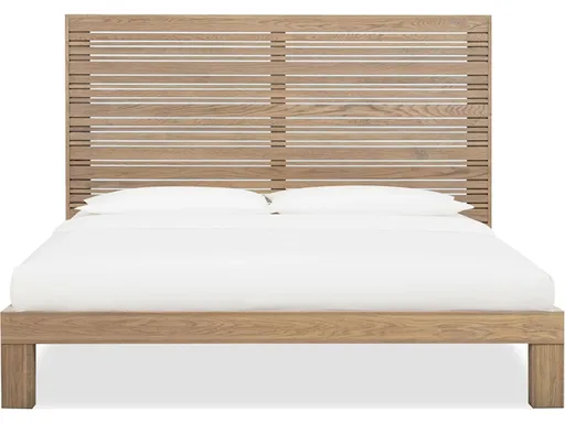 Linear motifs dominate this minimalist collection with slatted fronts and thin, shadowbox side panels resting atop slab legs. Made from mixed quartered and flat cut oak and finished in a transparent natural blonde, this collection is indisputably modern with traces of craftsman, coastal and Japandi styling.