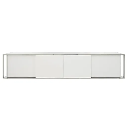 Make your entertainment center dreams come true with the Cecilia White TV Stand. Made of engineered wood with stainless steel accents and a white glass top, this TV stand even promotes a smooth glossy look for a modern or contemporary living room. You can organize your media storage behind the four doors that have adjustable shelves and compartments, so it's easy to be prepared for every watch party!