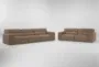 Experience the comfort and style of the Rhone 129" Light Brown Leather Modular Sofa & Loveseat Set. This modern set, featuring a sofa and loveseat, is upholstered in 100% top grain leather for a luxurious touch. The light brown color adds a warm, inviting feel to any living space.