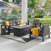 Chelsea Textured Black Aluminum and Weathered Teak Outdoor Wicker Concealed Cushions 4 Piece Sofa Group 52 x 32 in Fire Pit Table | Furnzy.com - Shop local furniture stores in one place
