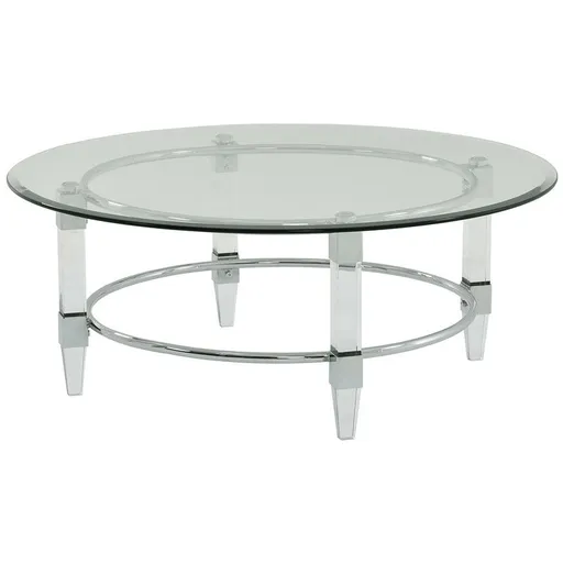 The Caroline Round Coffee Table finishes a small or big living room with a clean look with a smooth clear tempered glass top over thick acrylic legs. The chrome metal accents on the bottom of this piece contribute to the contemporary style.