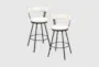 Enhance your dining room or kitchen with the Axel White Faux Leather Metal Swivel 30.5" Barstool Set Of 2. These barstools feature a sleek industrial design that complements any modern space. The white faux leather upholstery provides a soft and comfortable seating experience.