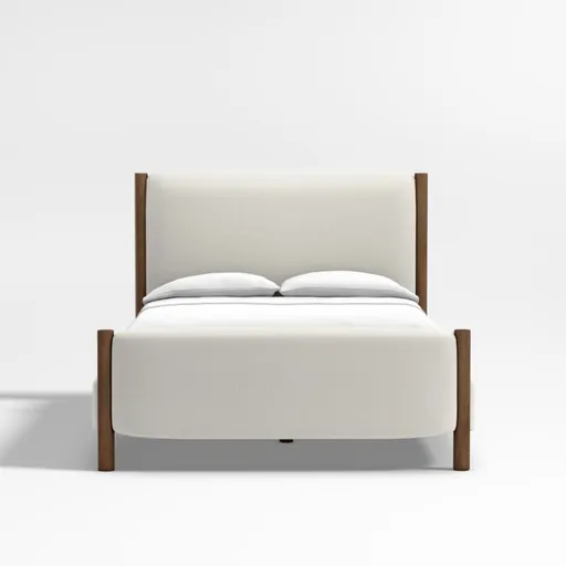 Goleta Bouclé Upholstered Solid Oak Queen Bed