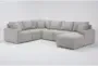 holland mist grey performance fabric 5 piece 98" modular flexsteel sectional with right arm facing chaise | reversible