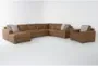 Introducing the Big Sur Saddle Brown Leather 4 Piece U-Shaped Modular Sectional with Armless Sofa, Left Arm Facing Chaise, and Chair. This casual sectional is designed to provide comfort and style to your living room. The left-facing orientation and U-shaped design make it perfect for family gatherings and relaxation.