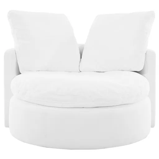 Get lost in the clouds with the modern Piper White Accent Chair. Upholstered in LiveSmart performance fabric, this piece offers deep, wide seating with two feather and foam-filled cushions for extra comfort. Part of our exclusive Carlo Perazzi collection, this chair also features a 360-degree swivel round base, so you and your guests can twist and turn easily.