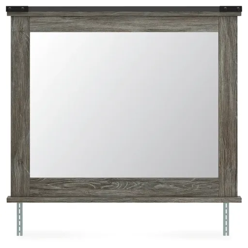 Cool, casual style is for all ages. With this bedroom mirror, they get the function they need plus the refined design you love. Approachably neutral in a rustic warm gray, it’s adaptable enough to pair with an assortment of existing colors and room decor. The mirror's faux metal detailing with nailhead accents lends an industrial edge.