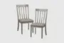Enhance your dining experience with the Gilman Grey Fabric Dining Side Chair Set of 2. These chairs feature a stylish slat back design and are armless, providing comfortable seating for your dining room or kitchen. Made from Asian hardwood and upholstered in a soft grey fabric, these chairs add a touch of sophistication to any space.