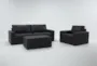 Araceli II Charcoal Grey Black Vegan Faux Leather 3 Piece 95" Queen Sleeper Sofa Oversized Chair & Ottoman Set | Furnzy.com - Shop local furniture stores in one place
