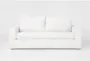 The Isabella II Cream Fabric 84" Condo Sofa offers a modern and inviting touch to your living room. Upholstered in soft cream fabric, this sofa provides ample seating space and features loose, reversible back cushions for added comfort and versatility. Its sleek design is perfect for contemporary spaces.