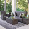 The Tribeca Collection contains concealed cushion seating composed of browns and greys for a versatile look that blends with every style. Each piece in this 3 piece sofa seating group is handwoven with 9mm half round PE synthetic strands of resin wicker, treated with UV inhibitors, over a fully welded, handmade aluminum frame with a multi-step powder-coated finish and supported inner walls. The coffee table includes a tempered 5mm beveled glass top. Sink into the triple-layer construction and quick-drying, concealed reticulated foam cushions of the sofa and club chair and relax in comfort. The cushions, wrapped in PVC texteline to hold their shape, are built-in, so you don't have to worry about securing them or readjusting.