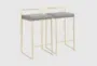 The Iyana Camel Faux Leather Metal Low Back Counter Height Stool Set of 2 brings a modern touch to your dining or kitchen space. Featuring a sleek grey faux leather seat and a sturdy metal frame, these stools are both stylish and durable. The low back and armless design offer a comfortable seating experience, perfect for any contemporary setting.