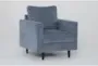The Bradley Denim Blue Fabric Modern Armchair offers a comfortable seating solution for your living room. This modern armchair is designed with a sturdy alder wood frame and upholstered in 100% polyester fabric. The cushioned seat and supportive arms provide a relaxing experience for any home.