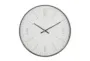 This 20x20 inch black and white vintage glass round wall clock is a perfect addition to your kitchen or living room. Its traditional style and curved design make it a timeless piece. The clock's neutral colors and minimalist design ensure it will complement any decor.