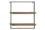 Organize and decorate with this 2 tier wall shelf that would add style and function to your industrial-themed home space. This item ships in 1 carton. Can be hung horizontally using the keyholes on the back; nails and screws not included. Suitable for indoor use only. This item ships fully assembled in one piece. Maximum weight limit is 20 lbs. This is a single brown colored floating shelf. Metal wall shelf features 2 shelves. Industrial style.